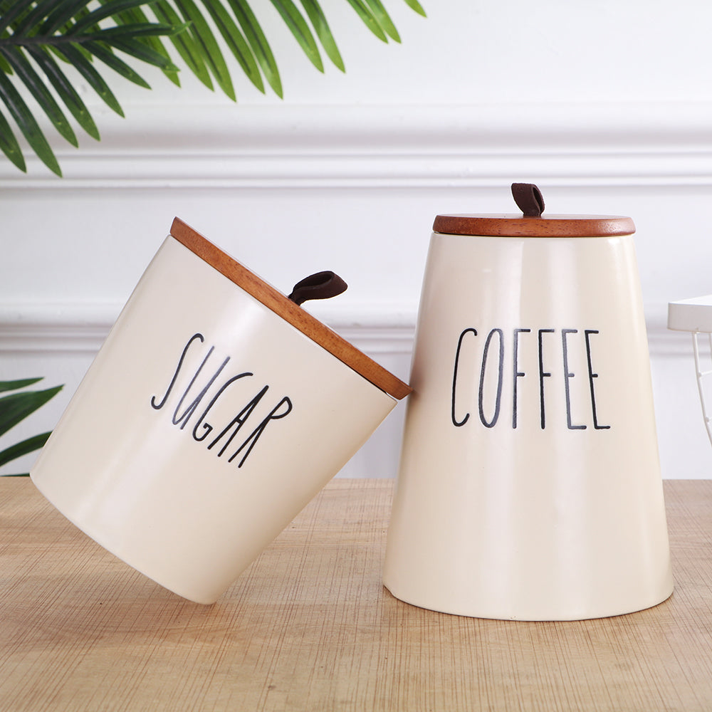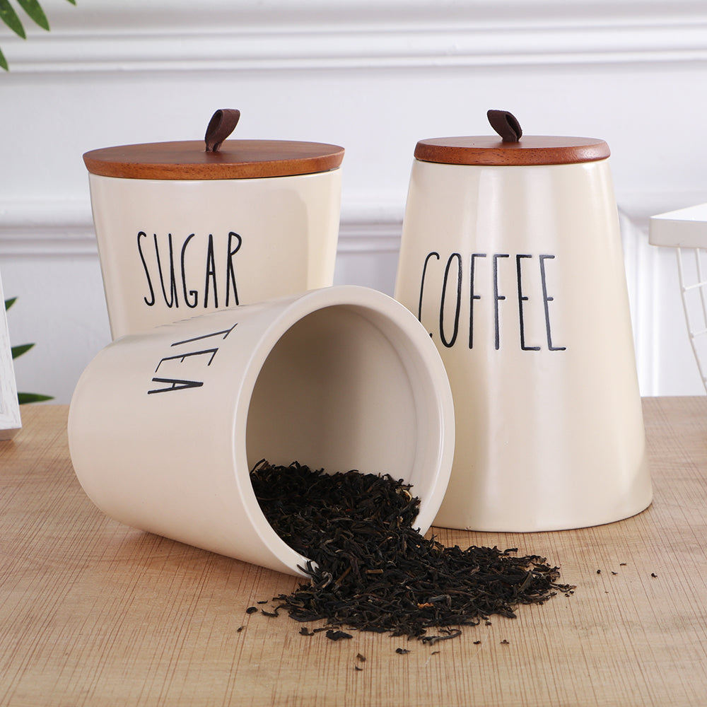 Ixora off white 1L tea coffee sugar canister with wooden lid (3 sizes)