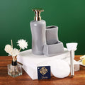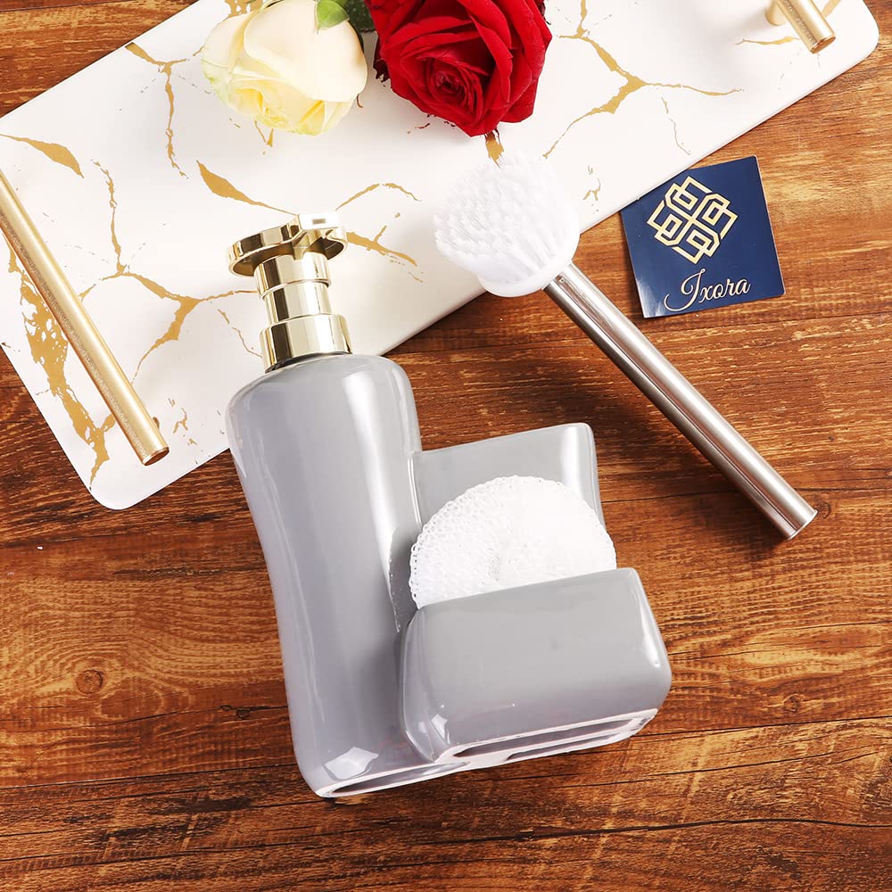 Ixora� soap Dispenser for Kitchen Sink with Round Sponge and Long Brush Grey Colour Ceramic with Golden Pump