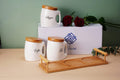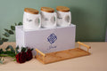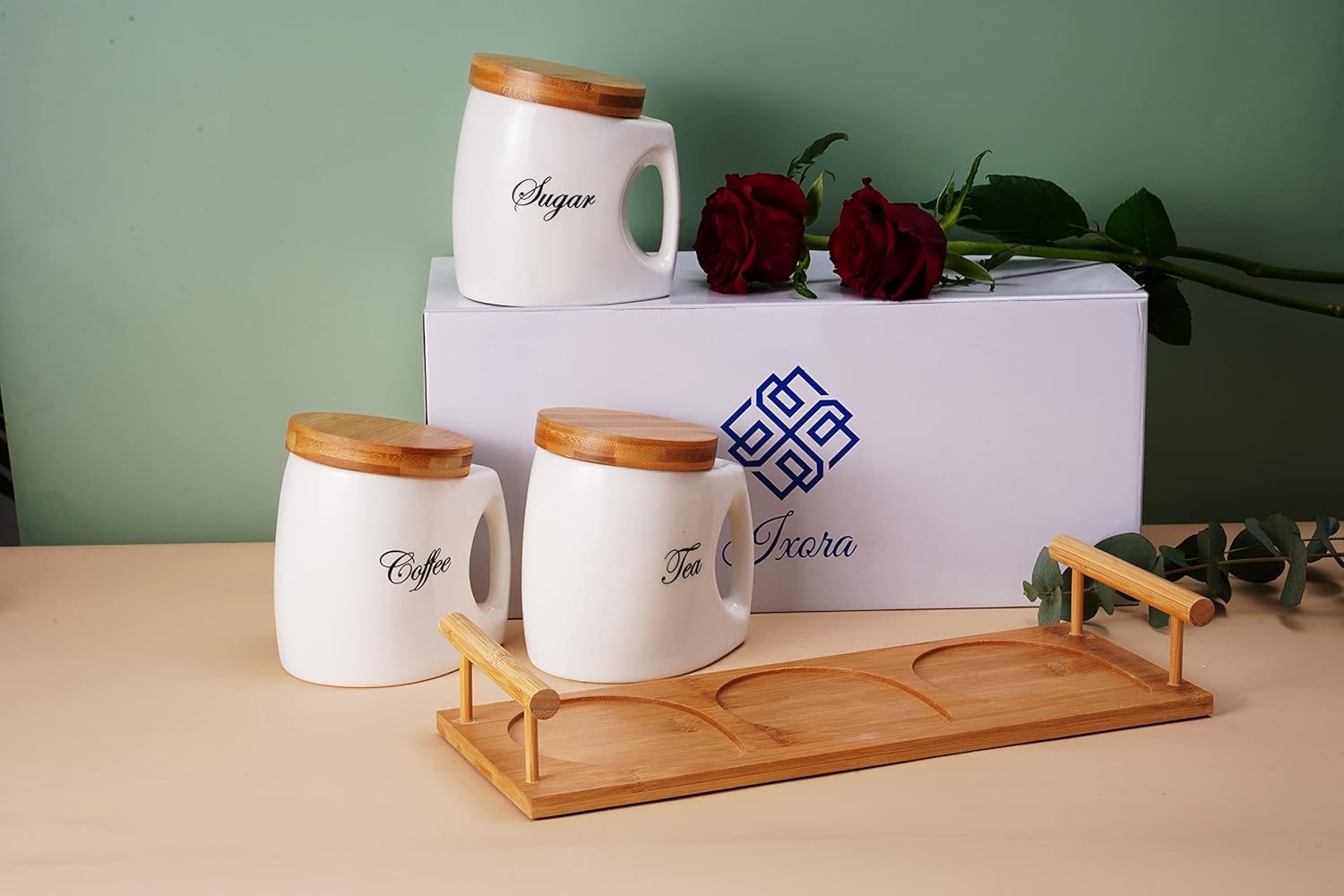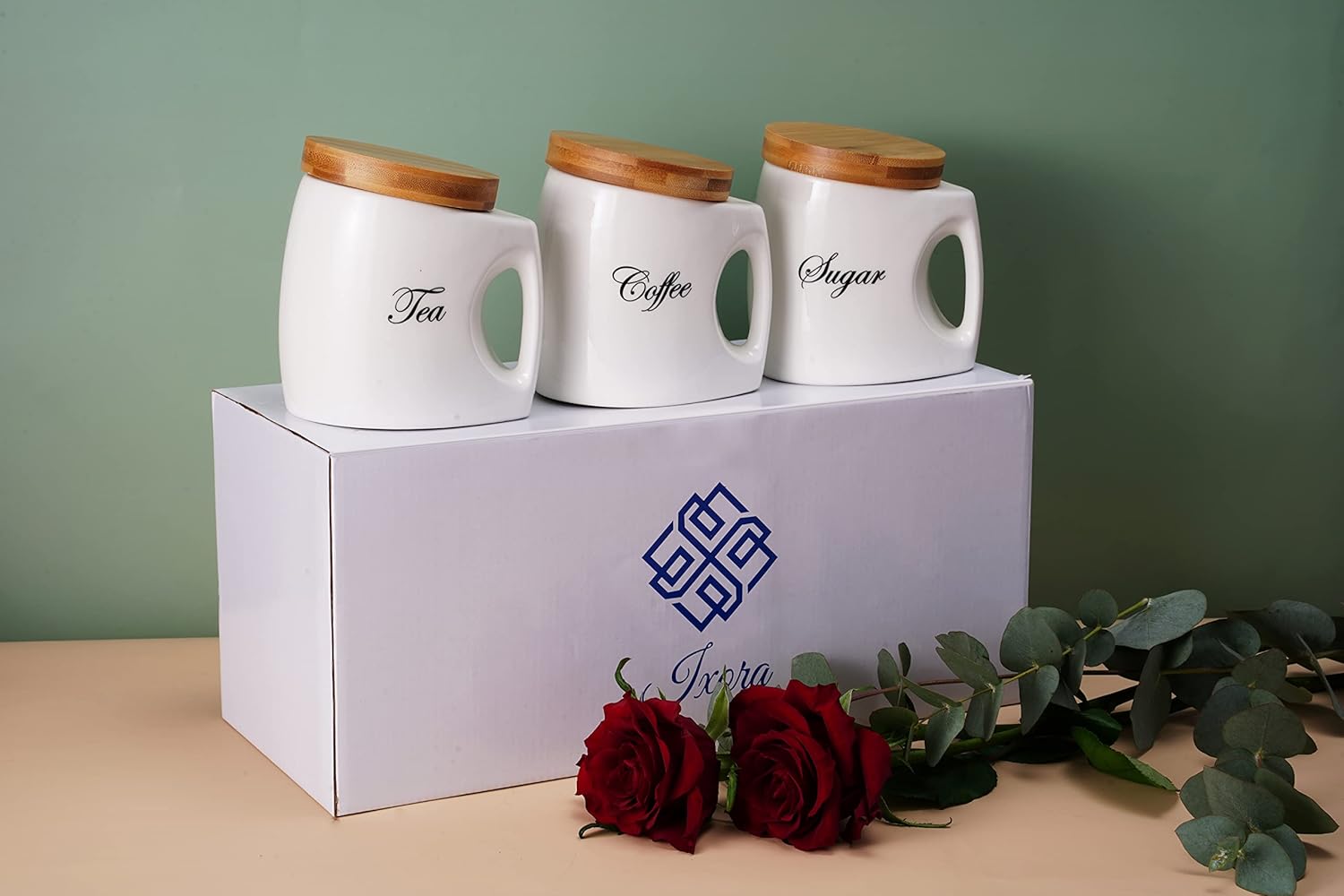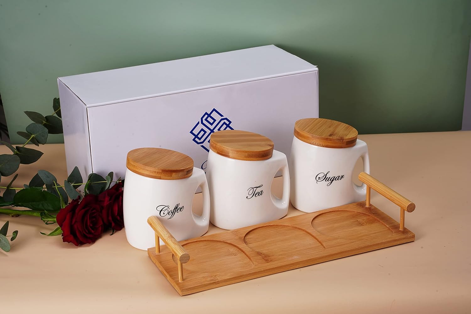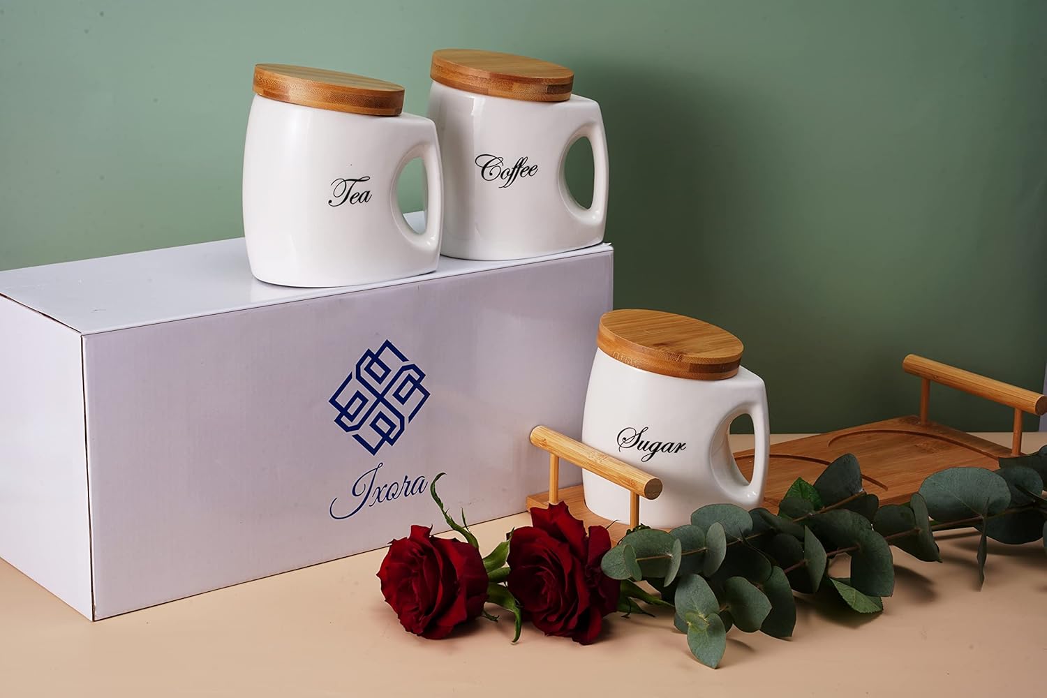 Ixora tea coffee sugar canister set with wooden tray 750 ml capacity